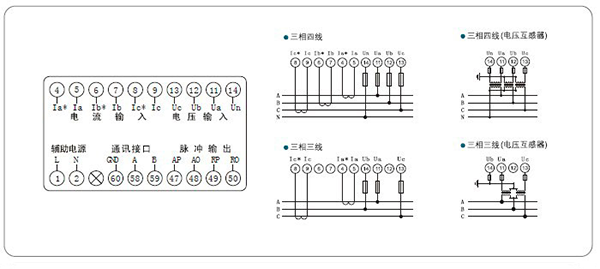 測量:三相電壓、電流、有功功率、無功功率、功率因數(shù)、電網(wǎng)頻率、有功電能,無功電能
