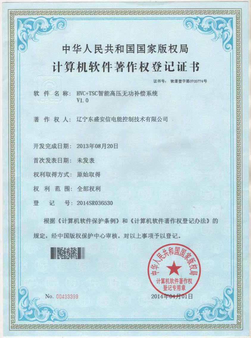 遼寧東盛安信電能控制技術(shù)有限公司自主研發(fā)系列產(chǎn)品獲得國(guó)家專利及著作權(quán)。